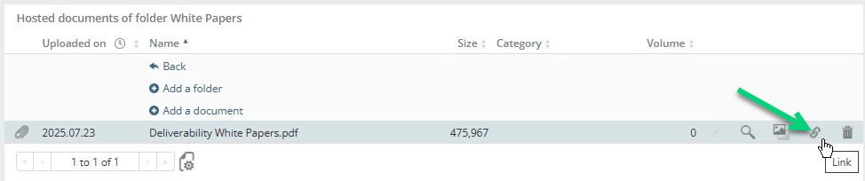 In the file list, click the link icon to copy the link and keep it for Step 2:
