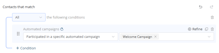 You could create a group to target contacts who have participated to a campaign. This targeting could be, for example, used to target contacts who completed a campaign for a webinar registration. Thus, you can target contacts who registered for the webinar.