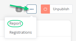 Go to the edition page of the event and click Report in the upper right under the 3 dots: