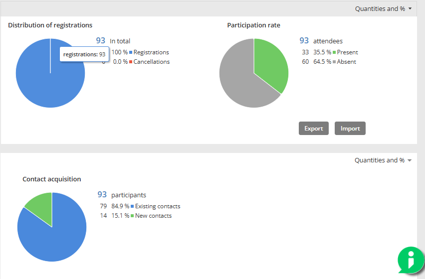 | Participation rate | Number of people who actually attended the event. The participation rate is calculated once the event is over. |