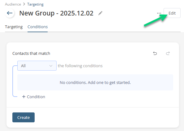 None: To create an exclusion group. A contact that meets none of the conditions of this group will be included in this exclusion group.