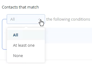 At least one: A contact must meet at least one of the conditions to be included in the group.