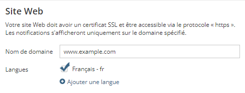 **Il est important d'indiquer les langues dans lesquelles vous prévoyez envoyer des notifications pour qu'elles soient disponibles lors de la création des notifications.