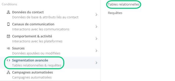 Vous pouvez cibler un segment de contacts en fonction des données d'une table relationnelle. Dans un premier temps, vous devez segmenter votre audience en créant un groupe. Dans un deuxième temps, quand vous serez prêt à envoyer un message, vous utiliserez ce groupe pour définir vos destinataires.