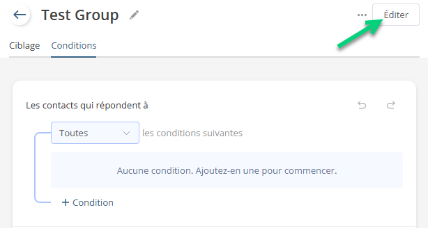 Après la création d’un groupe, cliquez sur Éditer en haut à droite :