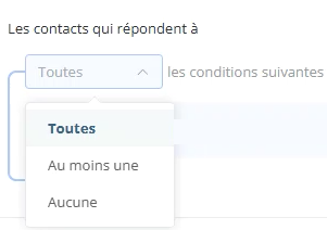 Toutes : Un contact doit rencontrer toutes les conditions pour être inclus dans le groupe.